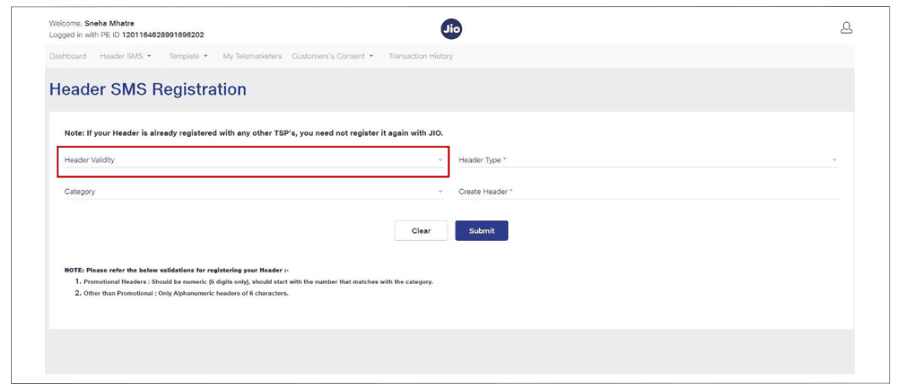 You won’t be able to send bulk SMS yet. You still need to register your Header/Sender ID on the Jio DLT portal to proceed.